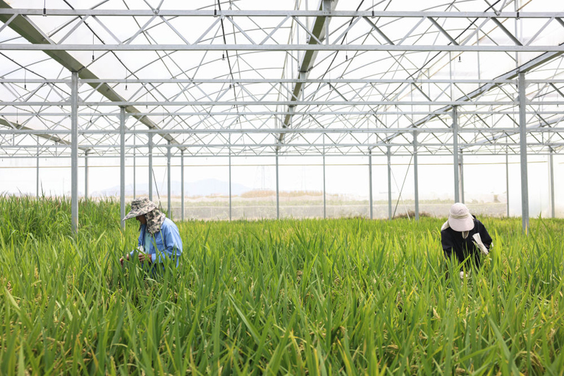 2025年3月21日,工作人员在海南三亚国家南繁科研育种基地收种。(新华社记者 张丽芸/摄)