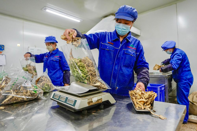 2026年1月26日,工作人员在宁夏固原市隆德县一家药材加工企业分包当归。(新华社记者 杨植森/摄)